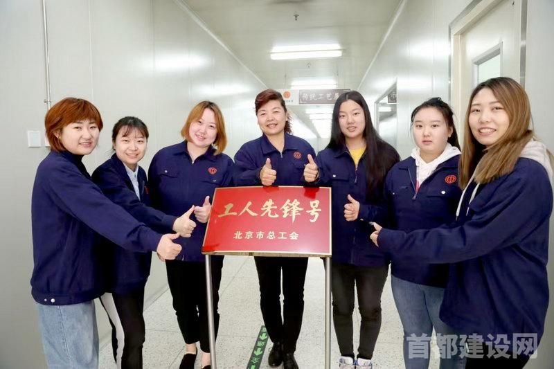 张冬梅(左四)带领班组获北京市“工人先锋号”称号 ■企业/供图