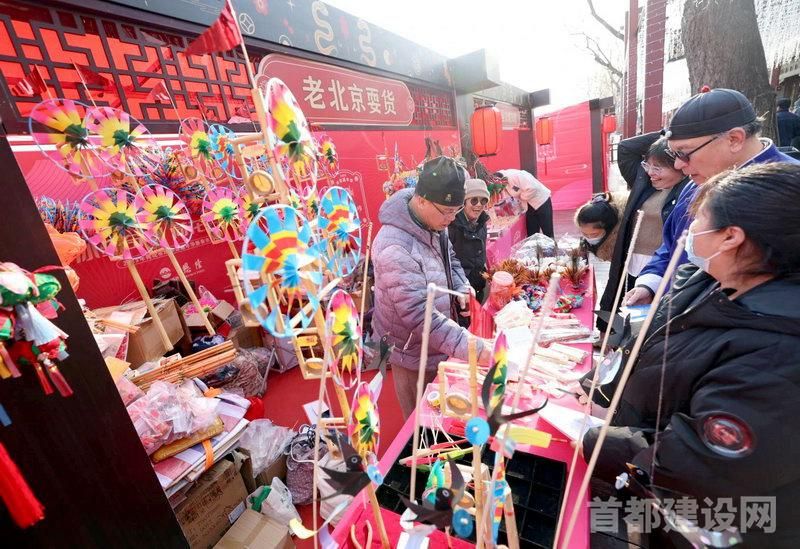 在荷花市集市现场,各项中华非遗技艺如电影画卷般展现,让游客大饱眼福。被人们称为“风车王”的王国华,是国家风车制作非遗技艺传承人,已是花甲之年他来到现场,手工制作精美风车;木板年画雕刻大师刘先涛也来到活动现场,让游客们见证木板年画从刻板到成品的过程,领略这一古老艺术的深厚底蕴;木做螺钿国家级传承人、葫芦镶嵌第四代传人康驹祥亮出绝活,展示超高的葫芦镶嵌技术,把普通葫芦变成精美艺术品。各色国潮文创让人一眼心动,多种彰显春节非遗民俗、中轴线文化、大运河历史的文创产品琳琅满目。市集现场还设置了冰雪主题区,开辟滑雪装备展示区与保暖用品专区,传播冰雪运动文化。