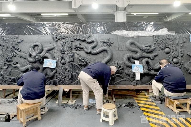 师傅们正在复刻制作九龙壁 ■企业/供图