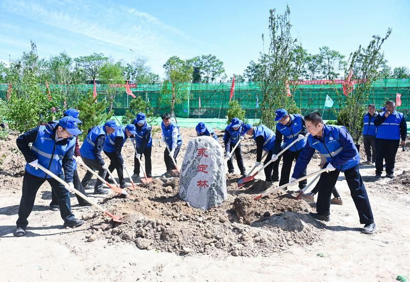 植树现场还举行了“永定林(北京丰台)”纪念碑石的落成仪式。碑石稳稳地嵌在植树区域的中央,与新植的树木融为一体,守护着永定河绿水长流,见证着河两岸生境复苏。