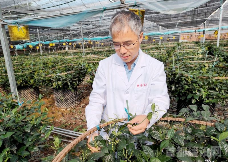 楼国柱考察珠兰花 ■企业供图