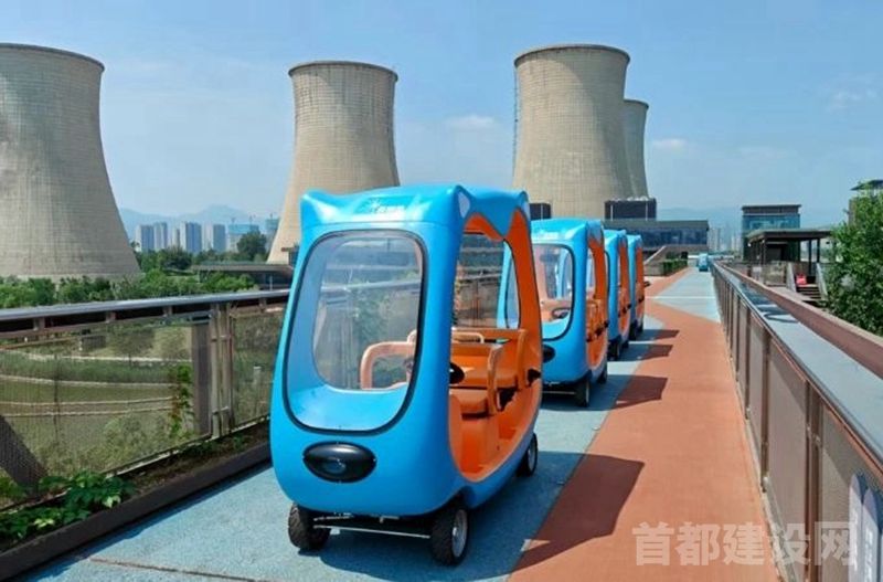 “首钢蓝”空中巴士穿行于高线公园 ■企业/供图