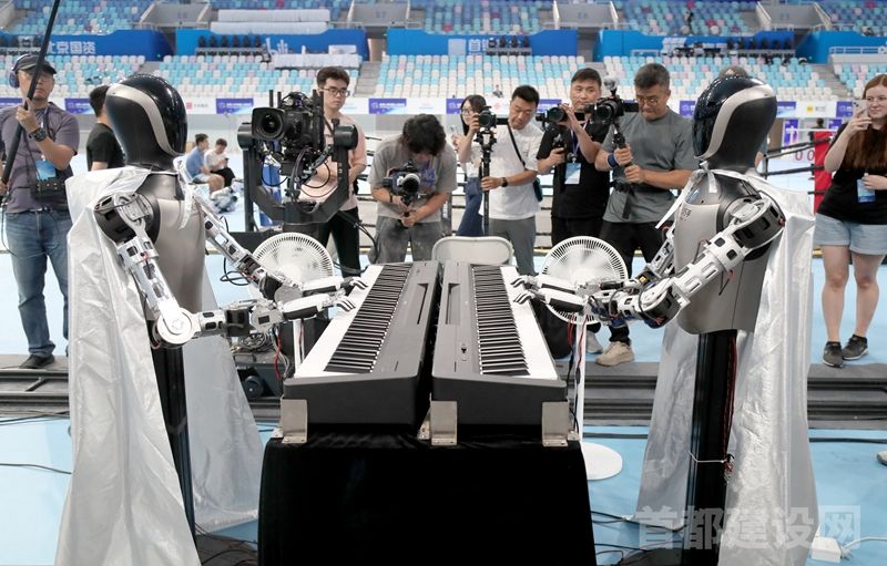 开幕式彩排前,两台机器人弹起钢琴,引来大批媒体的关注。