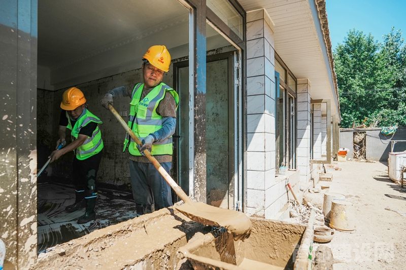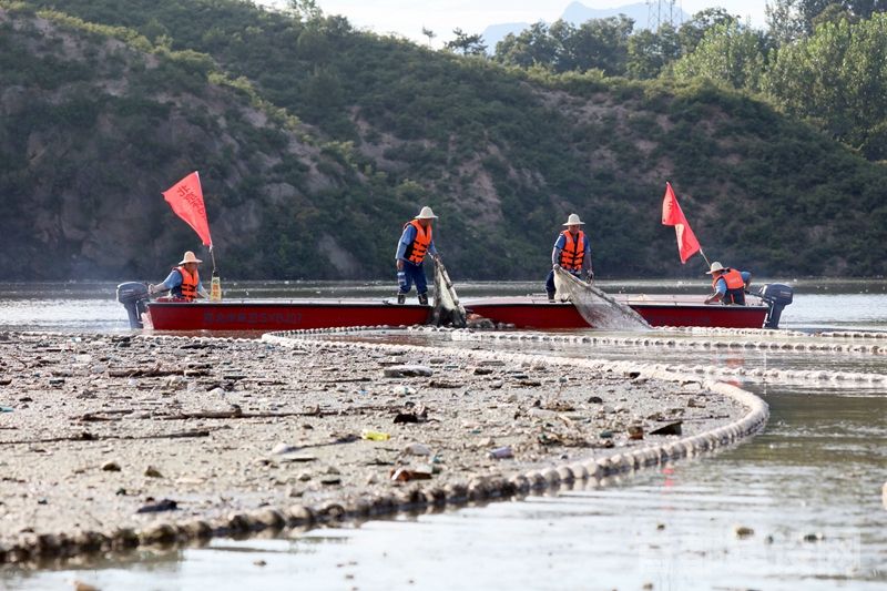 7月28日12时20分,北京建工城乡集团金河水务集团抢险队负责人高喜涛接到上级紧急指令:“密云潮河宁村新桥出现险情,立即组织力量赶赴现场!”挂断电话后,他抓起安全帽,冲出办公室。50名抢险队员听闻后即可集结,6台拖板车、4台挖掘机、2台伸缩臂抓斗车在院子里排成队列,引擎的轰鸣声与豆大的雨点声交织成出征的序曲。打通桥面泄洪通道“保持车距,注意避让!”在抢险途中,高喜涛借助对讲机不断提醒车队。13时40分,抢险队伍已在抢险点位集合完毕,随时待命。依据指挥部的部署,需将宁村新桥两侧护栏及中间隔离带进行拆除,并在桥面左右岸搭设沙