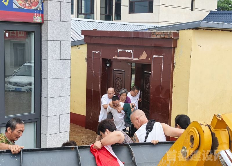 “您慢点儿,那房檐边滑得很!”被转移的大姐攥着刚领到的矿泉水,望着站在挖掘机铲斗里的身影哭红了双眼——北京住总二公司密云项目部安全总监赵松涛正随着铲斗缓缓升起,朝着二楼窗口挪动,一楼水太深,二楼还有两位老人被困在房间里。两小时前,接到防汛抢险任务的赵松涛,第一时间拉响了项目部的“应急铃”。“抢险车立刻待命,把仓库里的矿泉水、方便面都装上,再备20件救生衣!”不到半小时,载满物资和救援工具的车辆就朝着密云太师屯进发。抵达现场时,部分民房已被洪水围困,一楼积水没过胸口,二楼成了临时避难所,几位老人因行动不便无法转移。赵松涛迅